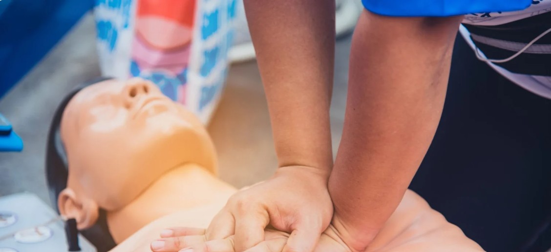 Je leert hoe je moet reanimeren en hoe de AED te gebruiken.